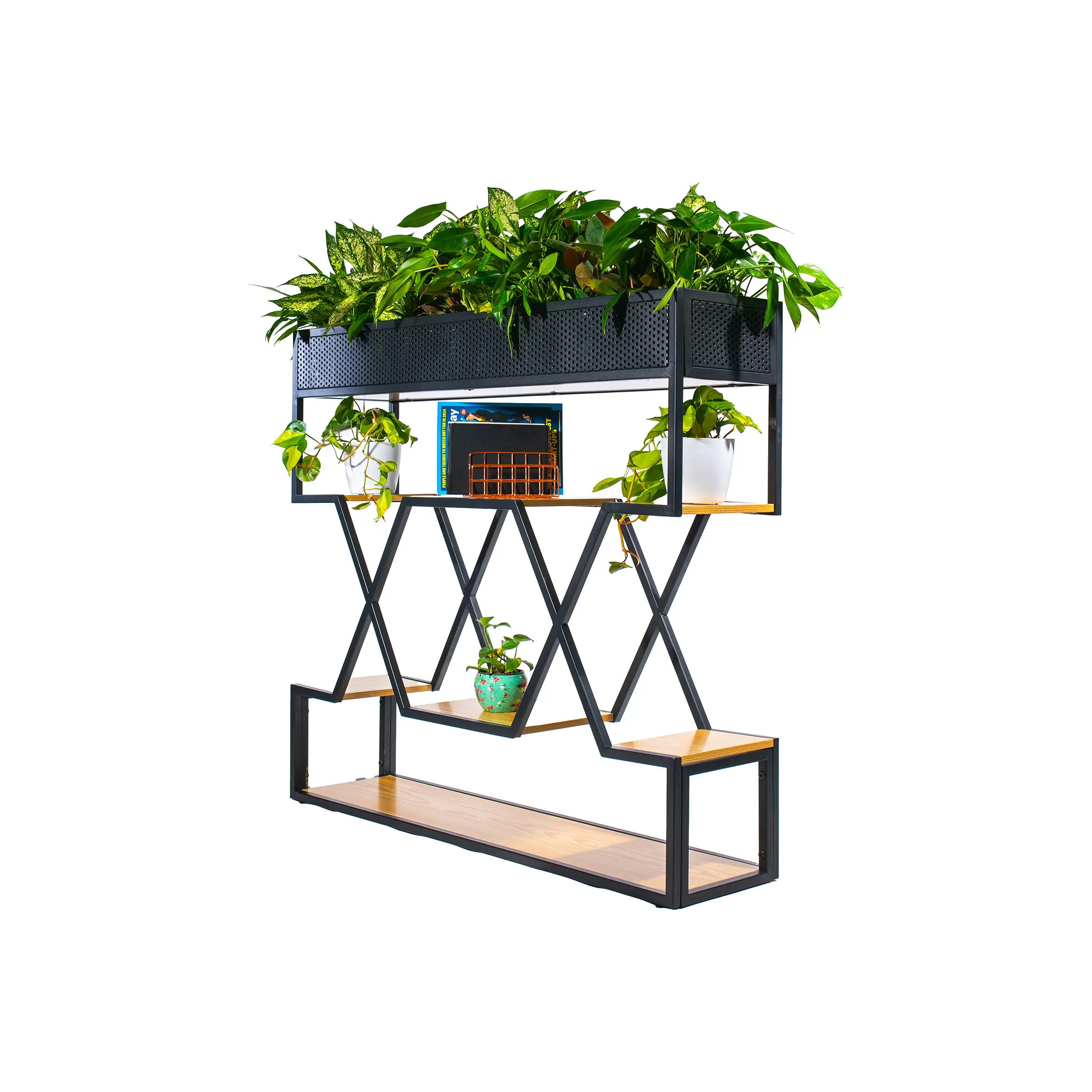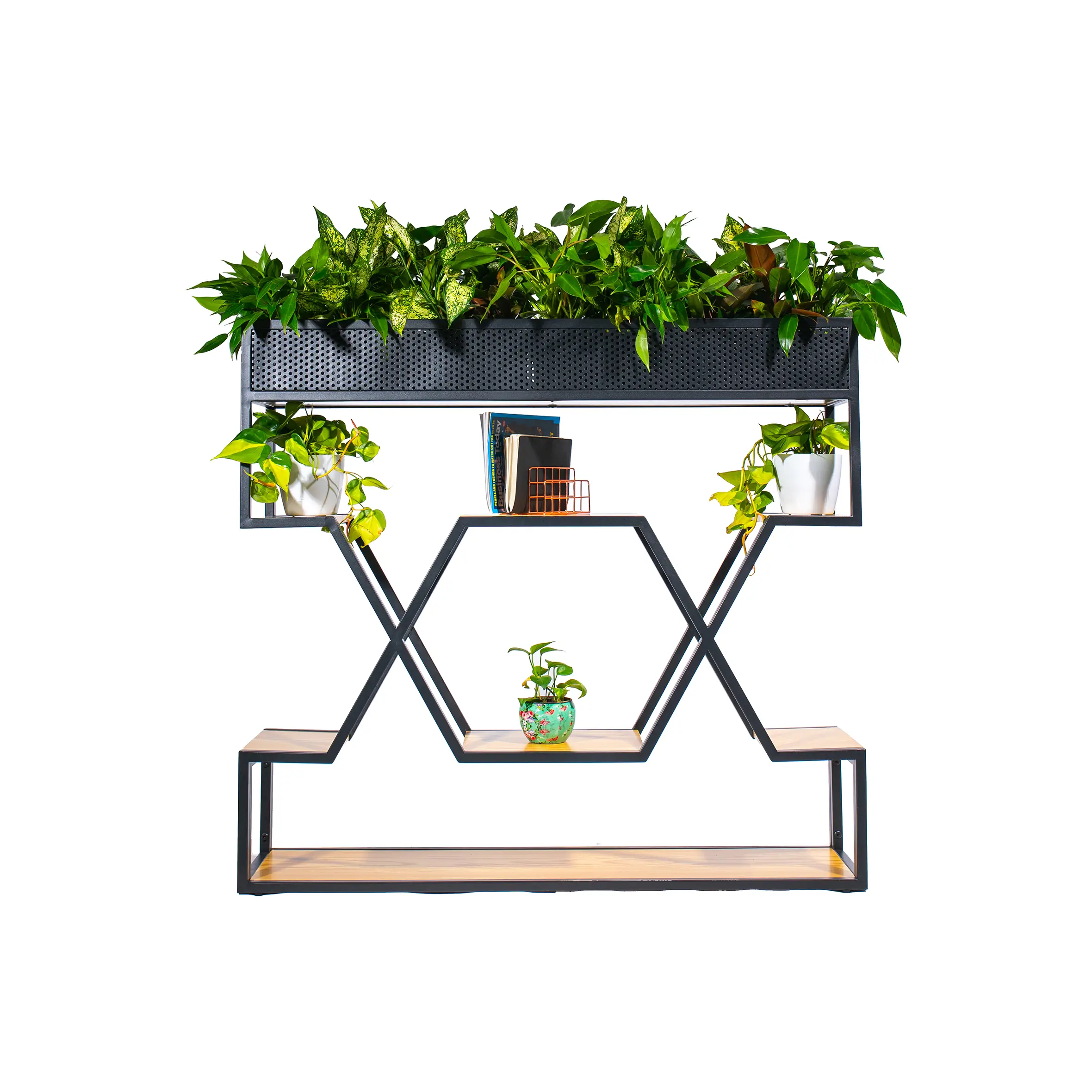 The Hexa Planter Rack is a stylish and functional space divider that seamlessly blends greenery with contemporary design. Featuring a sturdy powder-coated metal frame and engineered wood shelves, this partition is designed to create semi-private zones while adding a refreshing natural element to your workspace.