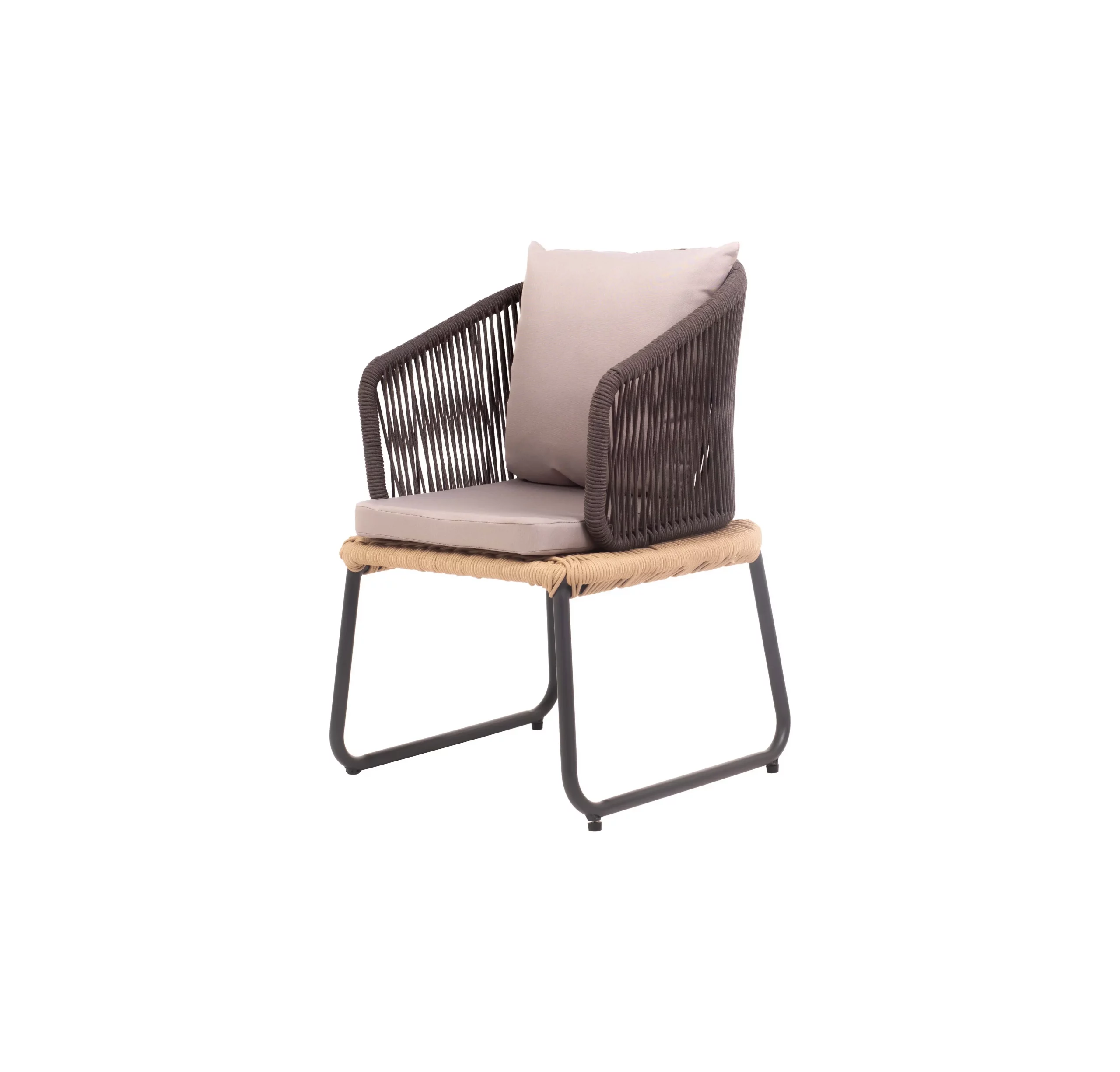 Designed for comfort and charm, the Valdoro Rope Dining Chair features an inviting handwoven rope backrest and plush, all-weather cushions. The walnut-toned frame adds warmth, while its open weave ensures breathability and elegance. Whether gathered around the table or used as accent seating, it’s built to elevate any alfresco experience.
