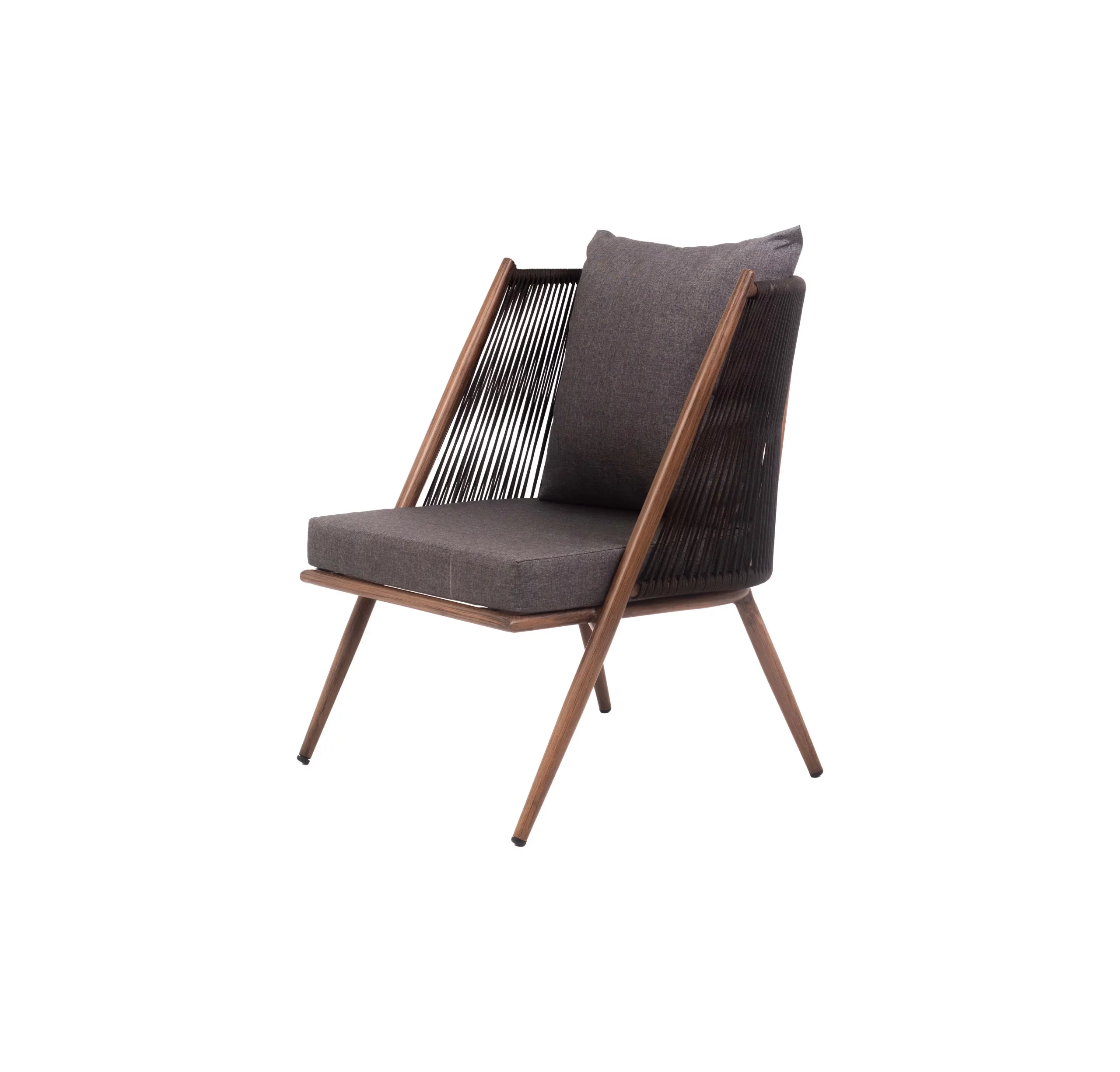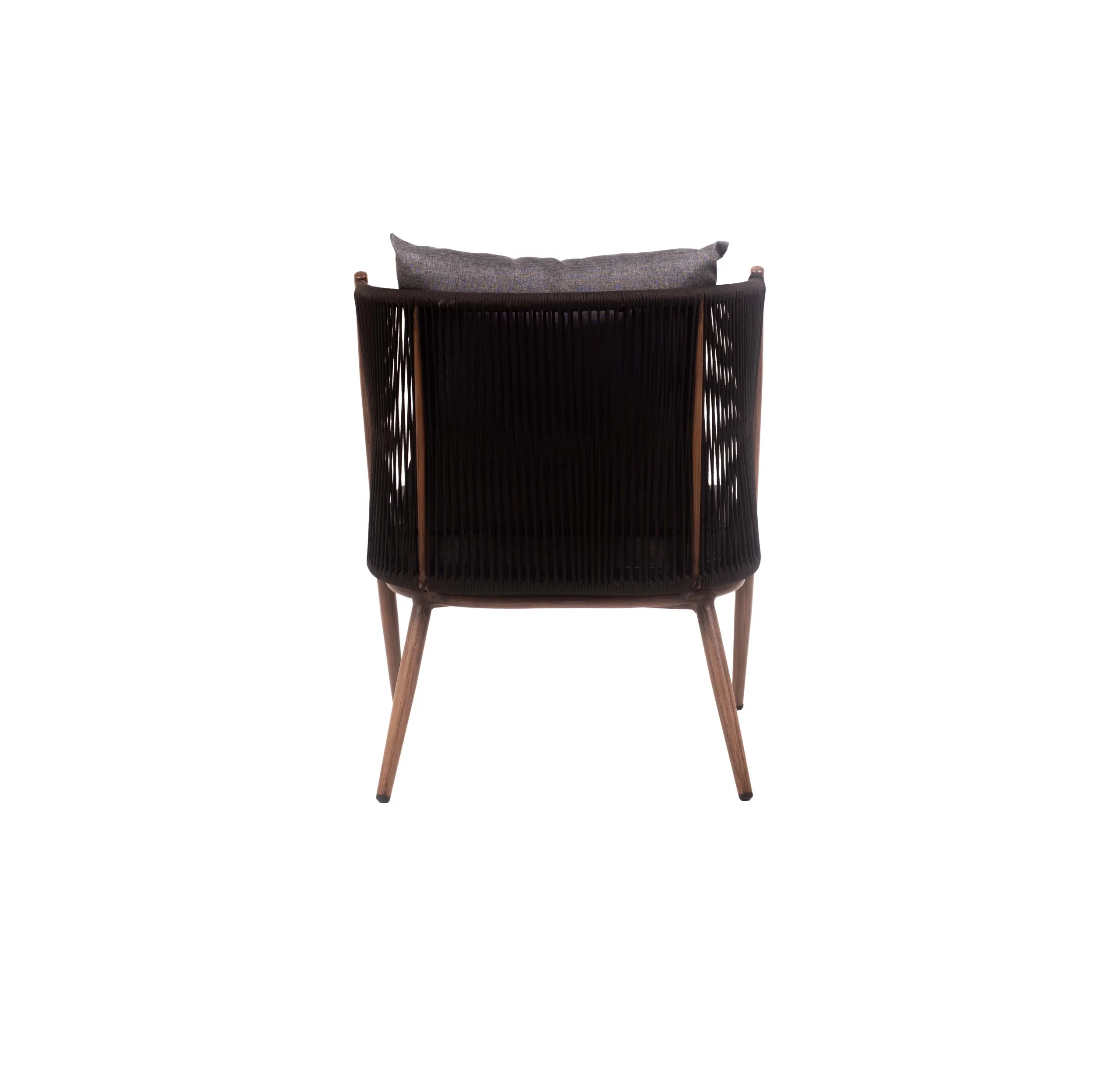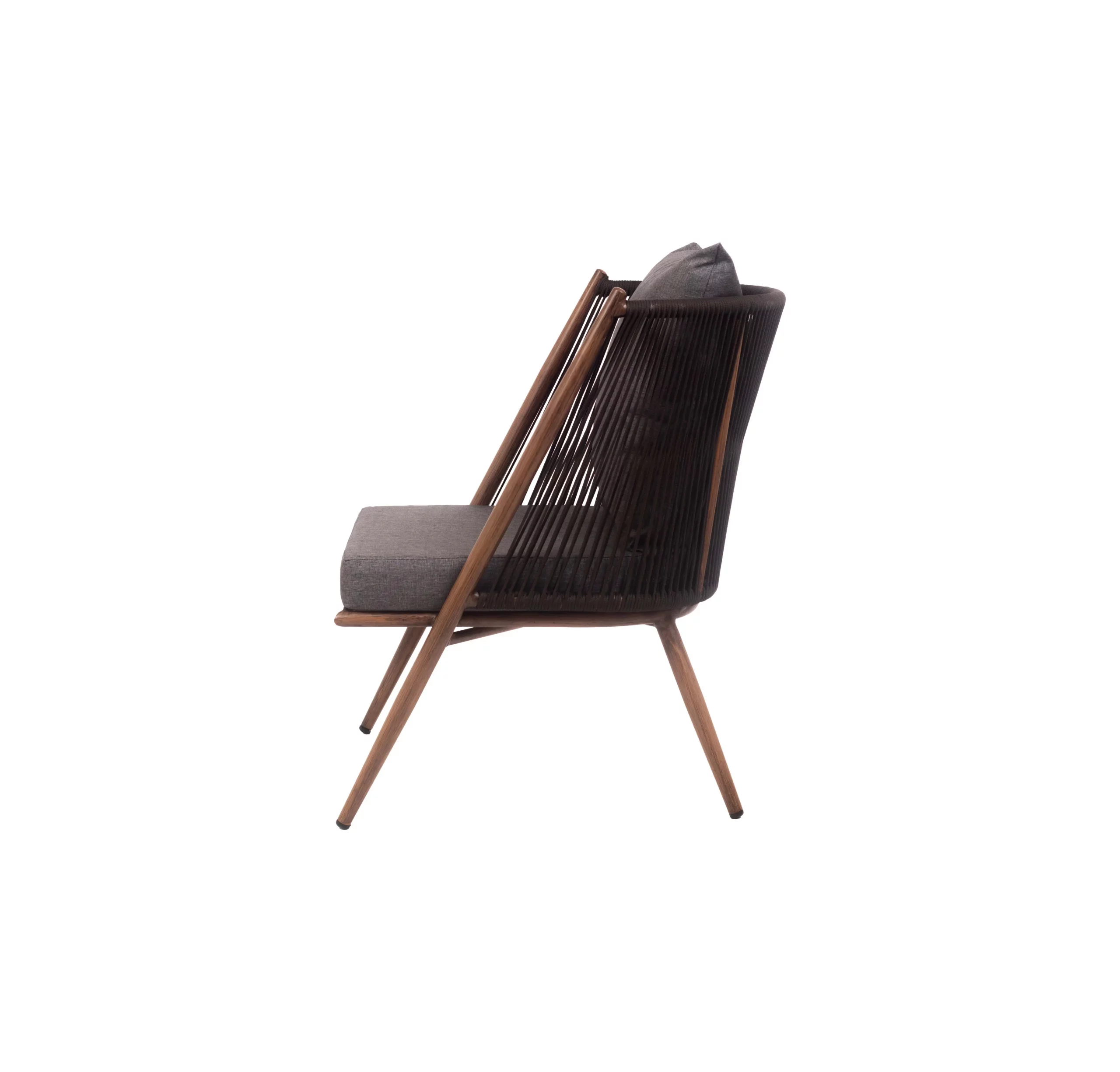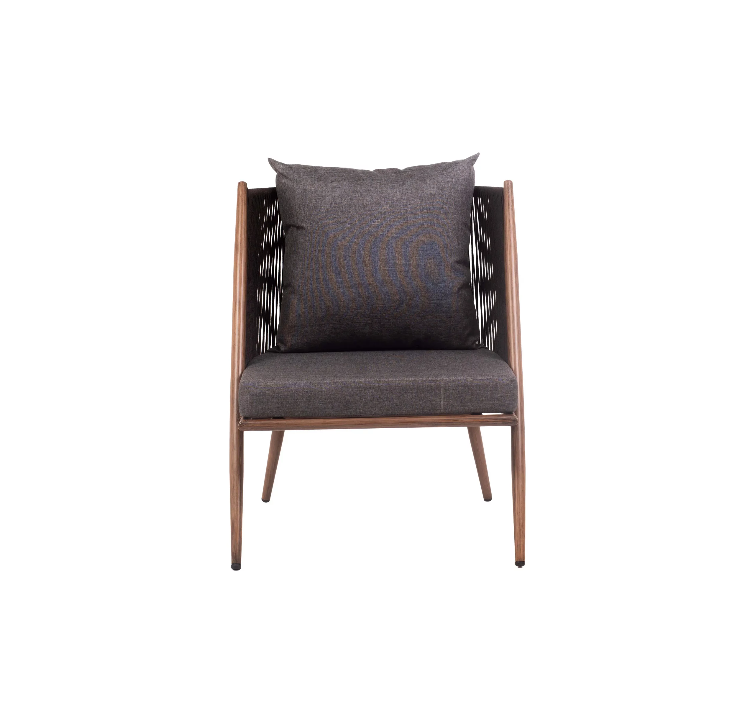The Verto Single Seater Sofa brings a bold statement to any outdoor setting with its angular silhouette and moody charcoal tones. Designed with a powder-coated metal frame and durable rope accents, it pairs perfectly with plush, weather-resistant cushions for maximum comfort and style.